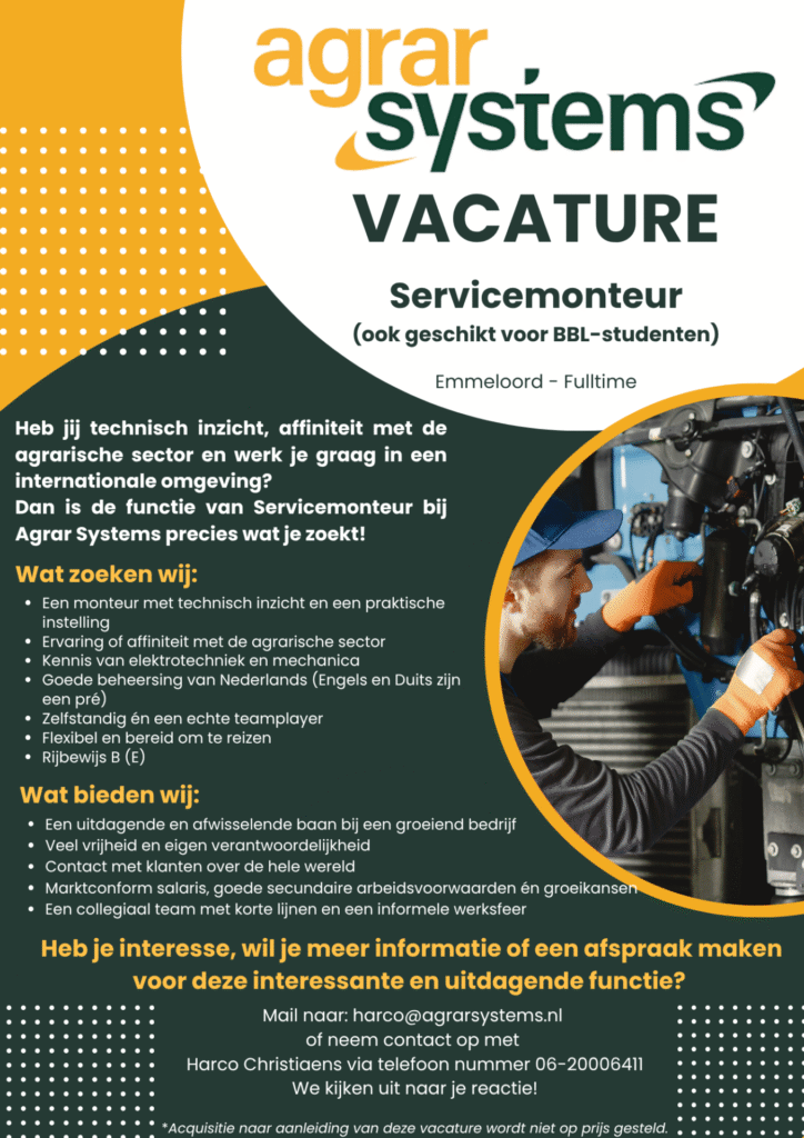 Dann wenden Sie sich bitte an Harco Christiaens, Tel.: 06- 20 00 64 11 oder E-Mail: harco@agrarsystems.nl